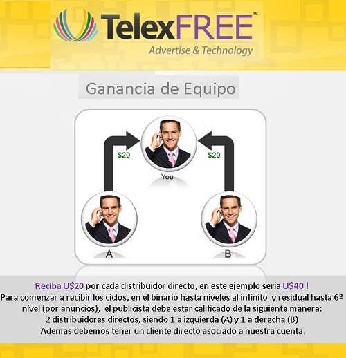 Gracias al poderoso plan de compensacion de TelexFREE, podrás ganar dinero de 7 formas posibles. Es el único plan de compensacion donde puedes ganar dinero sin tener que invitar personas, sin tener que afiliar gente, y sin tener que vender nada! Simplemente poniendo anuncios de TelexFREE en páginas de clasificados vas a ganar dinero desde la comodidad de tu hogar!